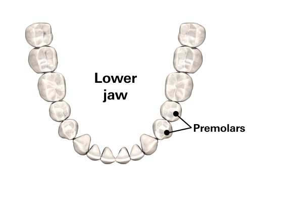 • The canines are followed by two premolars on each side. They come with a proper chewing surface, which helps them fulfill their main task, the grinding of food.
